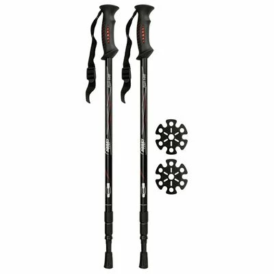 Les cannes de randonnée ont deux sections et peuvent être ajustés en longueur entre 63 et 135 cm. Les embouts en acier avec protections d’embout en caoutchouc pour la forme, ainsi que les systèmes de blocage de la rotation offrent stabilité et équilibre pendant la marche et permettent de réduire les tensions sur les muscles et les articulations. L’anneau en plastique au bas offre une adhérence supplémentaire dans la boue ou la neige, vous assurant un trekking en toute sécurité.