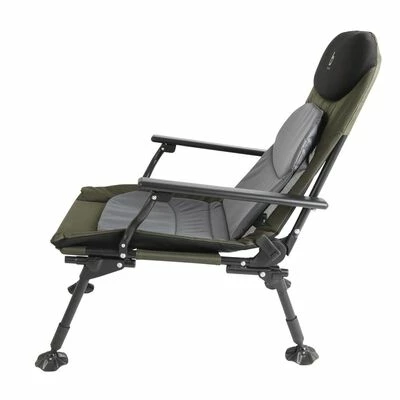 La chaise de camping est fabriquée en polyester Oxford 600D résistant et convient à toutes les surfaces grâce aux pieds indépendants réglables et renforcés. La chaise Carp est unique pour ses pinces à l’arrière, vous permettant d’ajuster le dossier dans n’importe quelle position que vous désirez et pour le cadre en acier fort qui offre de la durabilité.