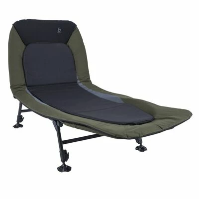 Cette chaise longue de pêche Sturgeon de la marque Bo-Camp en noir et vert est un lit de camping exceptionnellement robuste et confortable, parfaitement adapté aux pêcheurs et idéal sur tout front de mer inégal.
