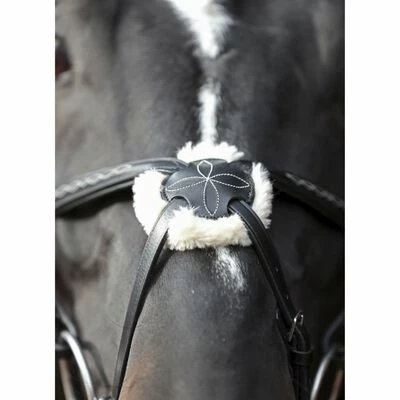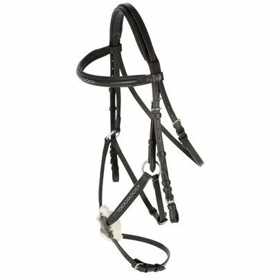 Fabriquée en cuir véritable de haute qualité avec muserolle mexicaine, cette bride de dégage un charme classique et élégant. Elle a une fausse fourrure douce sur le nez pour une distribution de pression plus uniforme et un confort supplémentaire. La bride est livré avec des rênes de la toile.