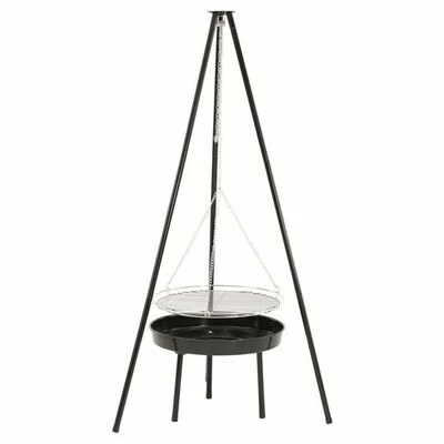 Le trépied de feu présente une construction stable, idéale pour un barbecue en plein air. La livraison comprend un plateau à feu et un gril réglable en hauteur, ce qui rend la cuisson plus pratique. Profitez de votre nuit avec la combinaison d’un feu chaleureux et de grillades !