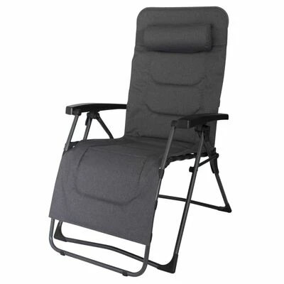 La chaise de détente pliable est en acier et en polyester Nova Cantonic 600 D. Elle est conçue avec un cadre en acier de Ø 19 mm et un siège bien rembourré, qui offre une expérience d’assise agréable. Le panneau arrière haut est réglable en continu et verrouillable pour un confort d’assise. Penchez-vous simplement en arrière et le fauteuil inclinable soulève la section des jambes. Le panneau arrière peut être verrouillé dans n’importe quelle position souhaitée, créant une chaise confortable et relaxante. Le siège rembourré est fixé au dossier avec des clips de cadre spéciaux et une bande élastique. Cela permet de retirer le siège de la chaise afin que vous puissiez facilement le nettoyer si nécessaire. L’appui-tête fourni est réglable en hauteur. Il peut être placé dans n’importe quelle position souhaitée et également être utilisé comme support lombaire.
