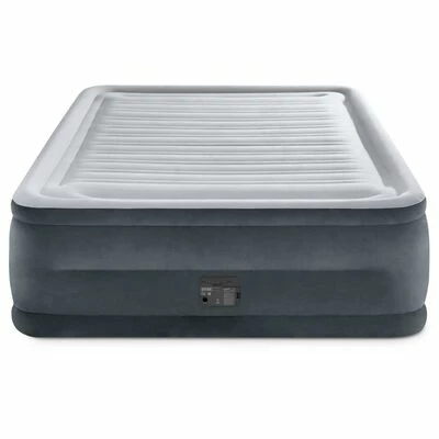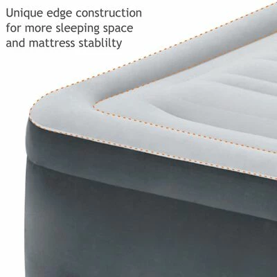 Ce matelas gonflable 64418NP Comfort Plush de la série Dura-Beam Deluxe de la marque Intex avec pompe électrique intégrée est considérablement plus solide, plus léger et plus confortable que les lits pneumatiques classiques et offre un sommeil sans stress.
