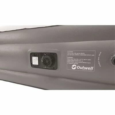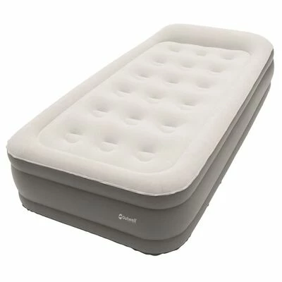 Ce matelas pneumatique simple 3 couches Flock Superior de la marque Outwell comprend une pompe intégrée avec une fiche d’alimentation. La conception Flock permet aux campeurs de dormir confortablement et à l’écart du sol.