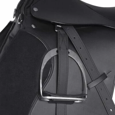 Cette selle en cuir véritable de haute qualité (100%) cumule l’esthétisme et la praticabilité. La selle est renforcée à tous les points de pression pour une durabilité optimale. Le tapis de selle en polyester est bien rembourré pour le confort du cavalier et peut être séparé pour un nettoyage facile. Les étriers métalliques sont assez solides pour les années de service. L’étrivière et la sangle sont robustes pour assurer votre sécurité durant la course.