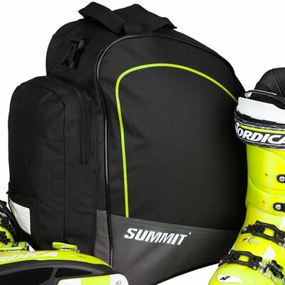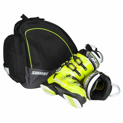 Ce sac à chaussures de ski en polyester noir et jaune fluorescent, polyvalent et pratique, de la marque Summit peut stocker vos chaussures de ski ou de snowboard ainsi que d’autres objets de manière organisée.