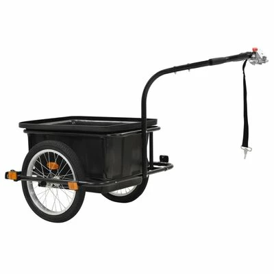 Cette remorque pour vélo est en acier, ce qui la rend très robuste et durable. De plus, elle a une conception d’accouplement à billes pour une fixation rapide au vélo. Dotée de 2 poignées sur la barre d’attelage, la remorque peut également être utilisée comme wagon à main. Les réflecteurs colorés haute visibilité sont conçus pour améliorer la sécurité. Grâce à la boîte de transport amovible avec une capacité de charge importante de 150 kg, la remorque est idéale pour transporter des courses, du matériel de camping, des articles de sport ou tout ce que vous devez emporter.